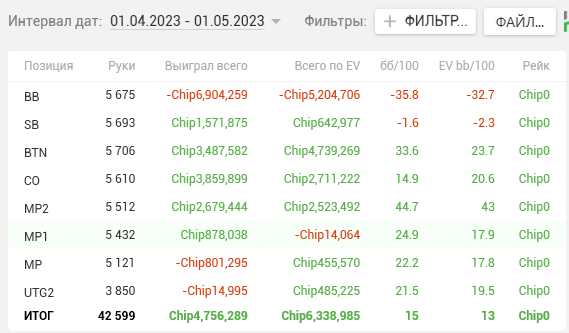 За апрель на аби 23 я заработал колоссальные 7890$ и оформил лучший месяц за всю покерную карьеру на тот момент. Заслужил ли я такие деньги игрой? Не уверен. Как вы видите в глубочайших дипах ЕВха составила всего 3,4. Да и по факту месяц я сыграл в ноль, а весь профит оформил благодаря двум джекпотам на гг