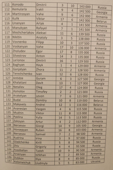 Доска , удвоение для Аветисяна, Нургалиев - 21,000.