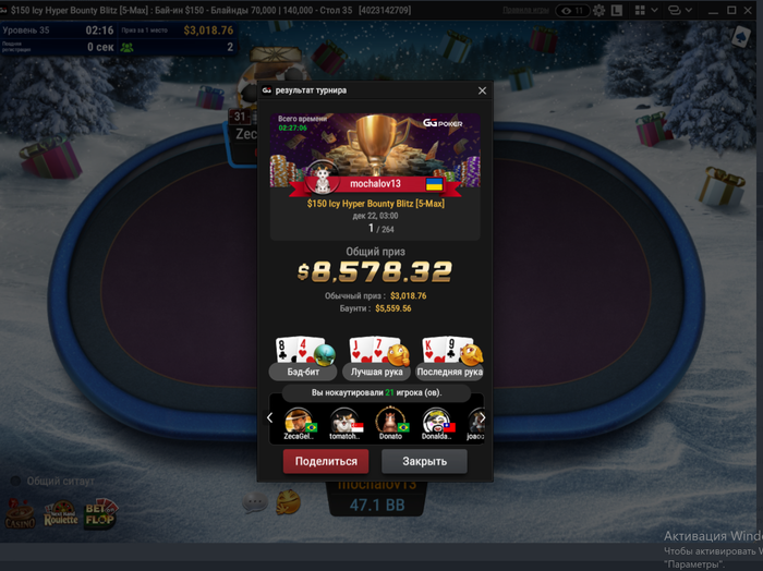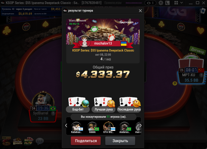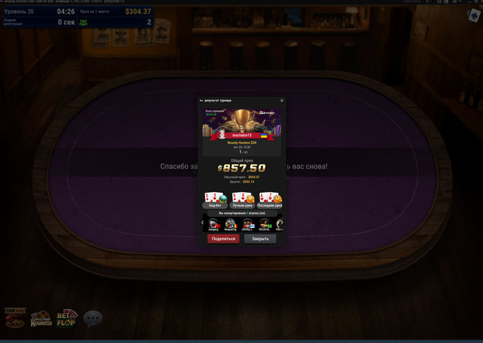 Соответственно сегодня в 88 турбине и в турбине за 8.8 просидел какое то достаточно длительное время в сит ауте, пока в каком то из этих турниров меня не пересадили за новый стол и тогда я и открыл второй...
