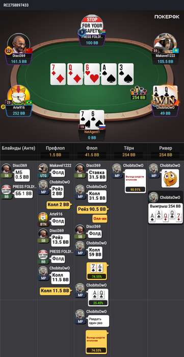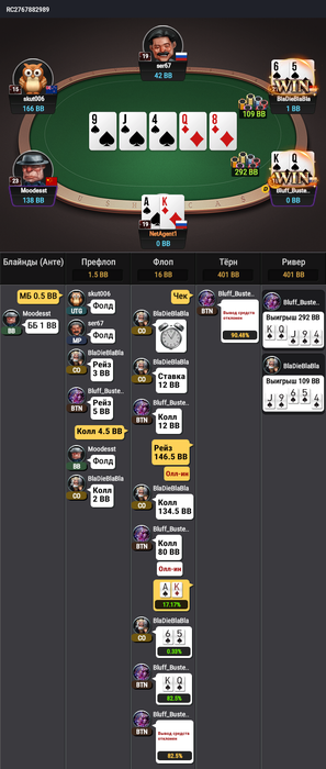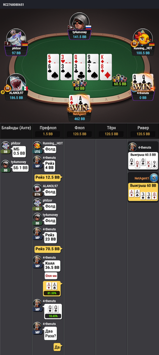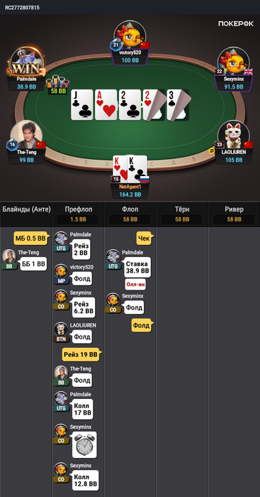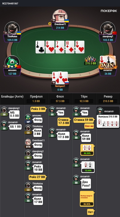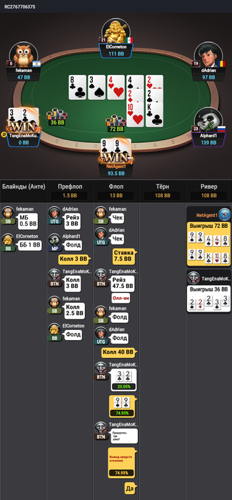 3) с большей вероятностью префлоп рейзер овер пары будем сам ставить флоп, а в чек рейз уводить только монстры или руки мимо чек фолд (сам что отправлял бы в чек рейз или в чек фолд чек колл? в мултипоте)