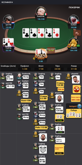1) почему играешь раш? Ведь в раш любитель имеет возможность сбросить любую не понравившуеся ему руку и играть более весомую, в отличии от рег столов где тот же любитель если ему скучно может играть от 50 до 90% рук (и да на рег столах можно выбирать игроков кто будет сидеть справа)