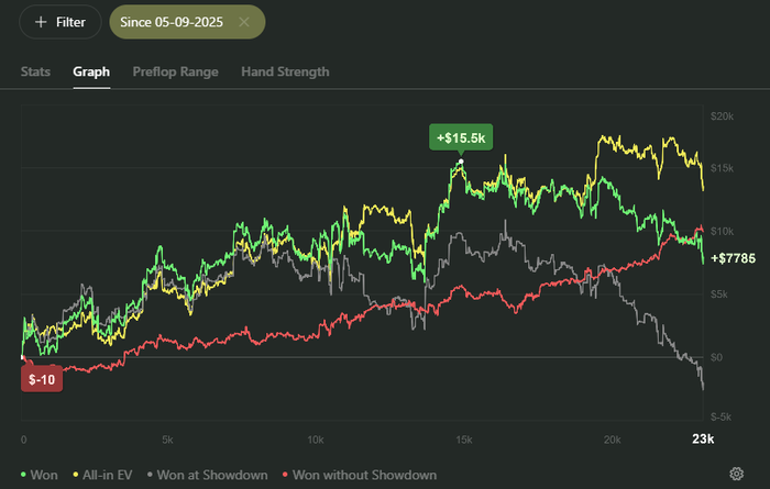 В общем в плане дисциплины полный провал, слишком долго не мог взять себя в руки после даунстрика, планировал ради восстановления психики и более качественного усвоения теории спуститься на эти лимиты, где не чувствуются деньги, условно месяца на 2-3, но затянулось на полгода из-за того что я тряпка слабовольная.