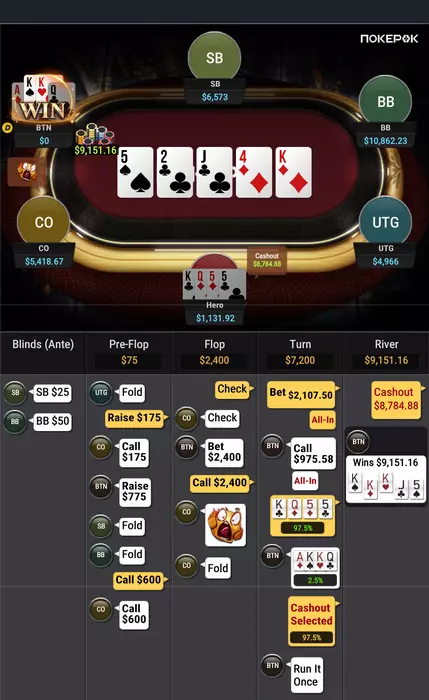 brn @ 23.01.24Очень скептически относился к кешаутам, типа доп рейк, развод для фишей, но почитал вчера автора, обдумал и пошел сам кешаутить вместо 2ух-3ех круток и легко и непринужденно "перебрал" 10 стеков по <cashout-result difference>
