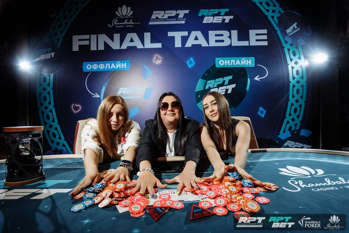 На флопе Георгий и Дмитрий выставились на все фишки. Мальцев , Хачатрян и Трунов . Терн , ривер и общий фулл-хауз для Хачатряна и Мальцева.