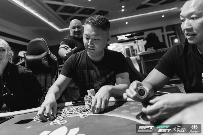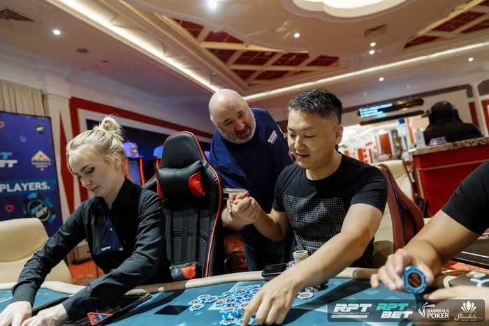Следующим был Янг Джиалин: выставились на флопе в 3-бет банке. Инна с сетом , Янг — .