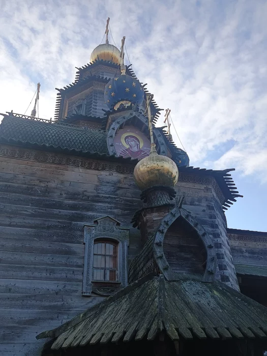 Под иконой золотой купол, некогда сиявший теплом, уже начинал сдавать свои позиции. Позолота местами потускнела, кое-где проступили тёмные пятна, словно металл тоже устал бороться с ветром, дождями и холодом. Он терял блеск, но всё ещё держался, привыкший стоять на своём до последнего.