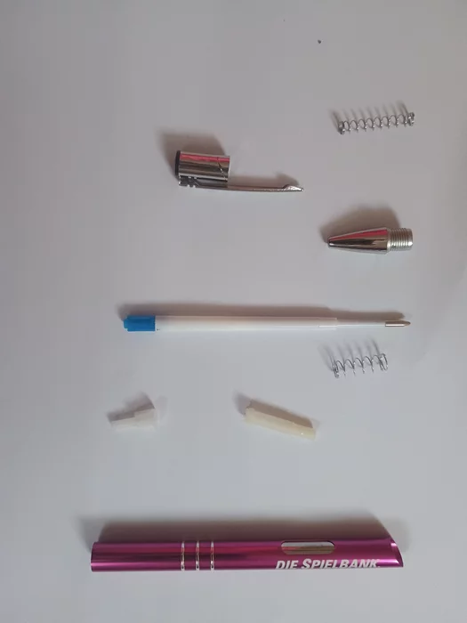 Как видно, у Spielbank ручка была металлическая, состоявшая из 8 частей. У Mercur ручка уже пластиковая и состоит из 4 частей. Видимо дела в казино не совсем хорошие, наверное, как и в Германии в целом - металл заменяется пластиком, производство падает и экономика на это соответственно реагирует. Большие энергетические и сырьевые издержки + конкуренция на международном рынке ударили по производству и экспорту. Металлическую ручку приятно в руках было держать - она была тяжеленькой и ты чувствовал себя как минимум небольшим начальником, который ставит резолюции, а когда берешь в руки пластиковую, то уже чувствуешь себя клерком. Старая ручка, наверное, была настоящая - сделано в Германии, а на счёт новой есть сомнения.