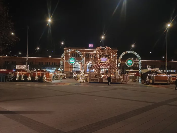Возле ЖД вокзала Ганновера уже сделали небольшую Рождественскую ярмарку, которая ночью выглядит красиво и сказочно.