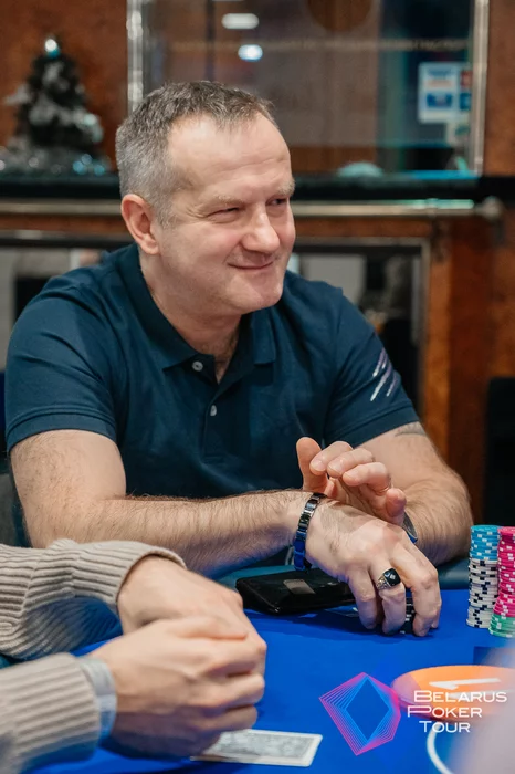 Выбыл Александр Прокопович. Подбил на ББ в мультипоте , наловил совпадение на флопе и выставил в олл-ин оставшиеся фишки. Его принял Павел Ким, Бастрыкин Сергей и Ефимов Георгий.