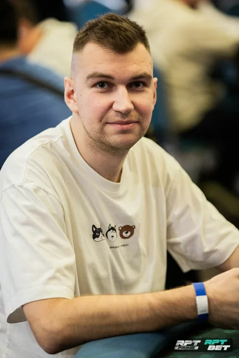 Никита Чумаков открылся с первой 8к, Антон Мельнков (MP) и Александр Ярош (BU). Артём Панасюк в эту компанию с малого блайнда поставил 45к. Никита крутанул до 100к и заколлировал олл-ин на от Артёма Панасюка. Артём показал .
