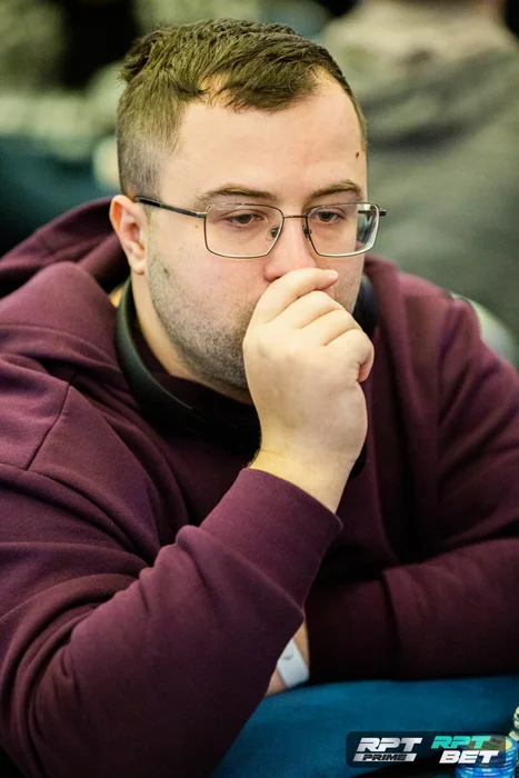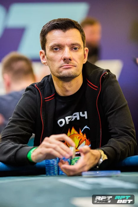 В открытие Равиля Тлимисова с первой и колл Дмитрия Руненкова Руслан Губаев запушил с большого блайнда около 200к. Равиль с уравнял и без боли устоял против Руслана Губаева.