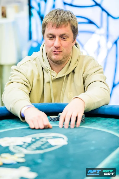 Игорь Абельмасов (650к) открылся 32к и уравнял пуш 86к от Дениса Паршуты.