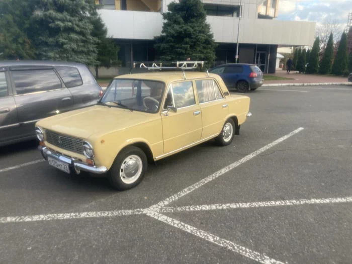 И вот такой раритет стоит возле неё с коричневым салоном, в отличном состоянии. При нас ещё несколько человек не смогли пройти мимо, чтобы её не сфоткать.