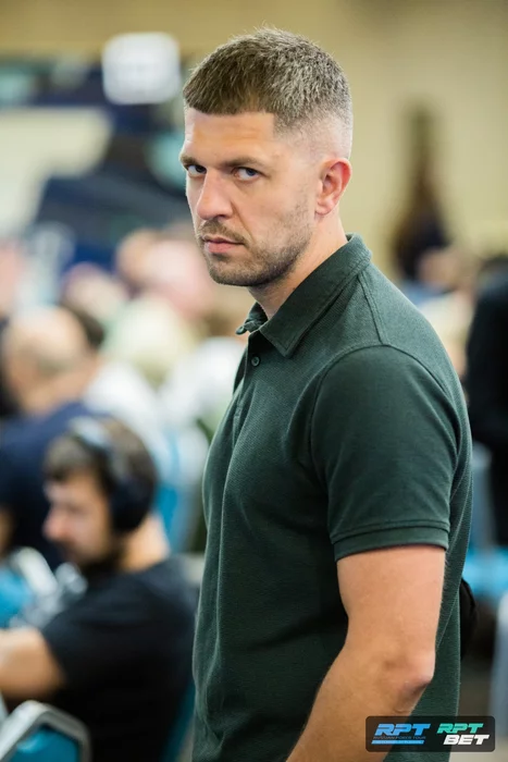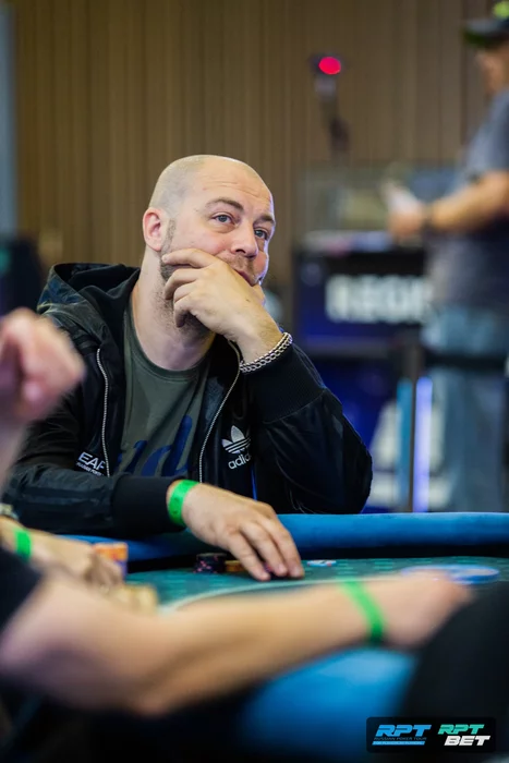 — Я же вылетел в начале дня, когда еще была открыта поздняя регистрация. Меня уговорили сделать ре-ентри. Но я его сделал только потому, что хотел попасть за тот же веселый стол. В итоге меня посадили в другое место, но я прошел в финал. Состав, конечно, сложный… Но у меня маленький стек, так что без сложных решений.