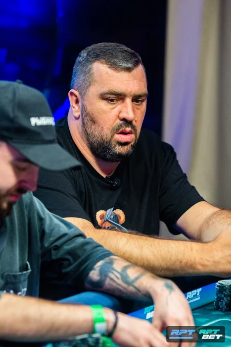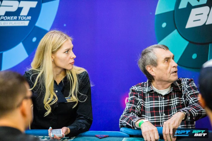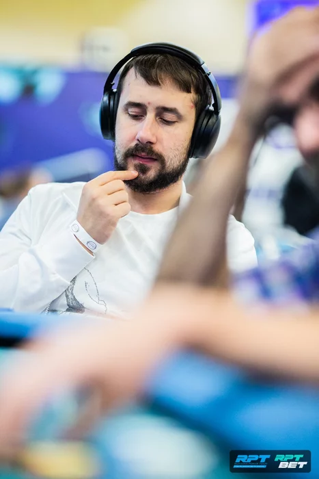 Перед перерывом важное удвоение потащил Михаил Остапенко. Ему дважды подряд раздали . Первый раз он выбросил их на олл-ин по риверу от Андрея Петрущенко на доске с тузом. Второй раз выставился против Меира Батырханова.