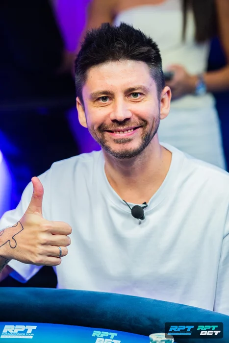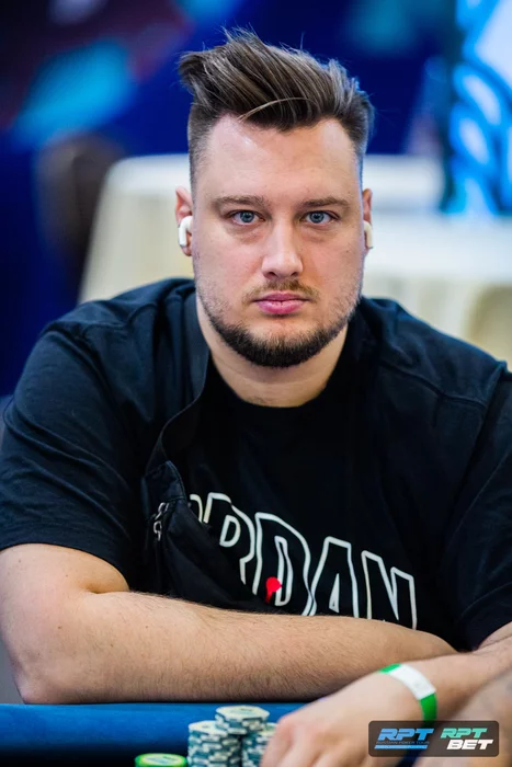 Первым с ТВ-стола ушел Андрей Матусевич. Зашел в топ-9 с самым коротким стеком, раздали классический кулер в Петра Руднева.