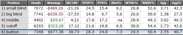 juentae @ 31.1.2011 Статы бы по позициям посмотреть, cbet success vs 1. А так WTSD высокий.