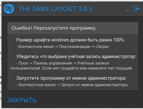 gelikkkk, Привет, так на скрине же всё написано. Размер шрифта нужно поставить 100% что бы контроллы в программе не смещались, раньше графика или кнопки могли отрисовываться не на своём месте или вовсе за областью окна из-за чего было не возможно установить лейаут. Запуск от имени администратора тоже является обязательным, потому что без прав некоторые файлы могут не замениться и некоторые функции программы не буду работать без которых так же лейаут не установится или установится не полностью. Второй пункт если не изменяет память не обязателен, если только не используется учётная запись "Гость".