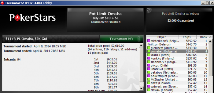 Pot Limit Omaha Tournament