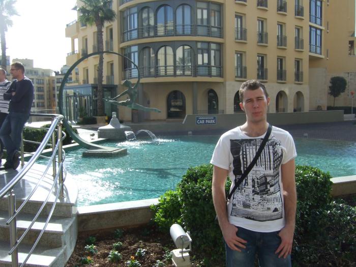 И только на последний день я опомнился и понял, что нету ни одной моей фотки на фоне чего-нибудь Мальтийского. тогда на выходе отеля я попросил знакомого фоткнуть меня. Видно, что я там как-той заспанный или типа того. Это после 3-х дней гулянки было небольшое похмелье и я только начал приходить в себя. Тут, надо сказать, что было пару небольших фейлов. Во-первых, я умудрился прогулять все деньги на Мальте, а кэшаут на Визу должен был прийти только через пару дней. Но ребята выручили, кто обналичил Старзы, кто одолжил немоного и у меня появился налик.. Во-вторых, я не до конца продумал маршрут назад. Я понимал, что на Мальте могло что-то произойти и я не купил все билеты, не бронил отели т. д. Купил только билет до Болоньи. Туда летает дискаунтер с Мальты, там рядом Флоренция, Милан, Венеция. Осталось только выбрать направление. В принципе почти определился, куда ехать, т. к. перед выездом на сайте знакомств стал пробивать девушек в итальянских городах и познакомился с одной хорошей в Милане, т. ч. скорее всего возвращался бы через него. Но загадывать на все 100 я не хотел, поэтому вопросы билетов и отелей я собирался решать на Мальте. Но, блин, я же не знал, что там будет так весело... В общем, в день выезда я обнаружил, что денег нету и я еду в никуда. Ребята с деньгами подсобили, а вот как ехать и где жить, этот вопрос был актуален.