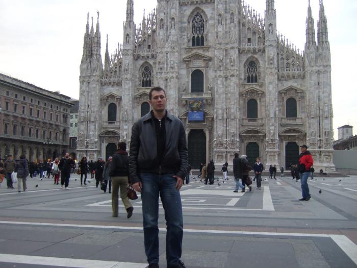 Полетел в Болонью, доехал до вокзала, сел в скоростной поезд до Милана и через час был там (но перед этим 2 часа ждал, пока поезд приедет... у них тоже опаздывают). В Милане я немного подохренел от местного вокзала. Здоровый, красивый, современный. Не то что у нас в Питере, городе с населением в 3 раза больше. Был уже вечер и я стал искать где бы переночевать... В Италии такая тупость, что вай-фай везде платный и даже если хочешь, то х. з., как за него заплатить. Т. е. я 2 часа ждал задерживающийся поезд, потом час ехал и за это время по идее можно подобрать в инете отель, но куча сетей и хрен к ним подключишься. Введите логин-пароль. Где их взять - х. з. Я был сильно уставшим и наверно еще потому не получилось разобраться. Погуляв по ближайшим к вокзалу улицам, нашел какой-то недорогой говно-отель и там переночевал. С утра было решено, что надо перебираться ближе к центру и пару часов посидев в инете (за 3 евро в час)))) нашел более-мене вариант в 3-х минутах ходьбы от центральной площади. Перебрался туда и пошел гулять.