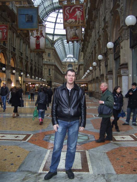 Съездил на экскурсию (чего так и не сделал на Мальте, фиш). Позвонил девушке с сайта знакомств и договорились завтра встретиться. Хорошенько отоспался и на следующий день мы с ней пошли вместе гулять. Наши с ней фотки выкладывать не буду, т. к. я их даже вконтакт не выложил.. немного неэтично это, если кому интересно, пишите в личку, покажу ее. Вот это она фоткнула меня на входе в Галерею Витторио Эммануеля.