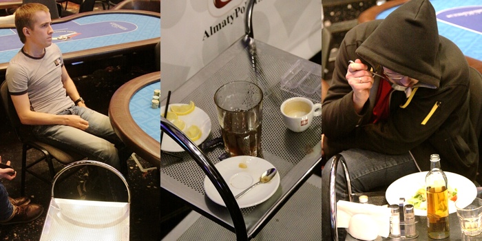 Upd. Только что Саша Морздвинов выиграл большую раздачу у Вихтюка с А-9 и тузом на флопе, и подтянулся к нему по стеку (консультации Якубы в перерыве не прошли даром!). Галатенко, стало быть, теперь снова впереди...