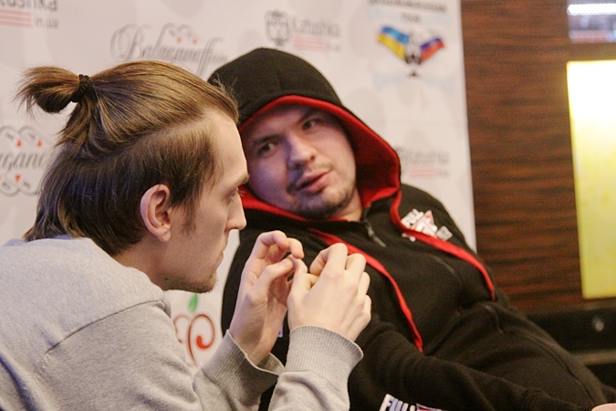 Кстати, надо сказать, что из квартета участников финального стола двое - Александр Вихтюк и Иван Быченко отобрались в турнир через сателлит на Lotos Poker. Только что им вручили соответствующие награды, а они исполнили свой рекламный долг, попозировав в кепках этого рума...