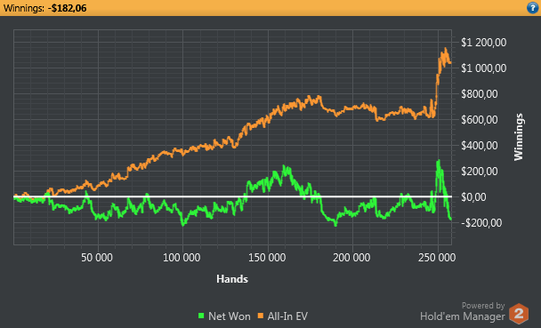 С таким количеством рук, как ты играешь в день, ты можешь играя в 0, стабильно бить лимиты за счет РБ, тем более что по ЕВ твоя игра+
