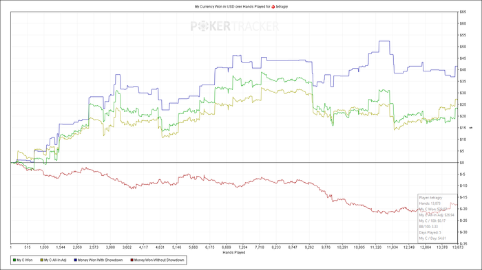 SB: 105.1 BB (VPIP: 22.64, PFR: 17.92, 3Bet Preflop: 7.50, Hands: 107)