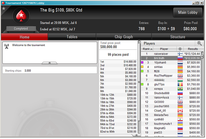The Official ProPokerPro Hand Converter6 players (stacks): Hero (SB): tim truth (387973)