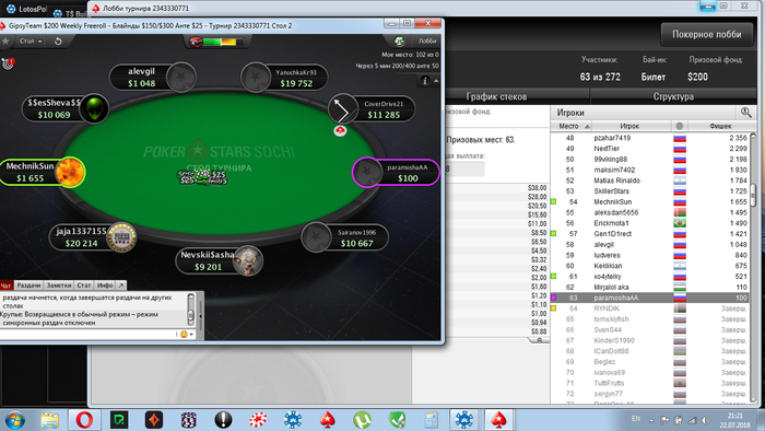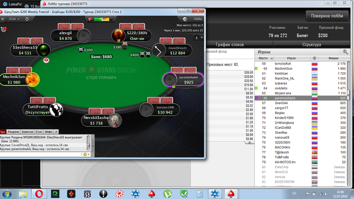 NIKZHIV, я тебе открою одну маленькую тайну,что даже в топ 3 месяца люди попадают исключительно из за этих фокусов ( не буду называть ники ) когда идет уже зона призовых очков просто открой все столы и понаблюдай за людьми и как скидываются руки на последней секунде основного времени.когда ты скидываешь все руки( даже премиум руки ) то на других столах идут выставления и тебе капают доп очки ) Набивается просто стек 2-5 раз больше начального а потом все скидывается до призовой зоны,а стеки людей в сит ауте медленно таят.вот и весь рецепт и люди этим пользуются )))на ПС при стеке 9к из 300 человек можно занять примерно 20е место по такой стратегии а это + 25 очков к общему зачету в лиге )