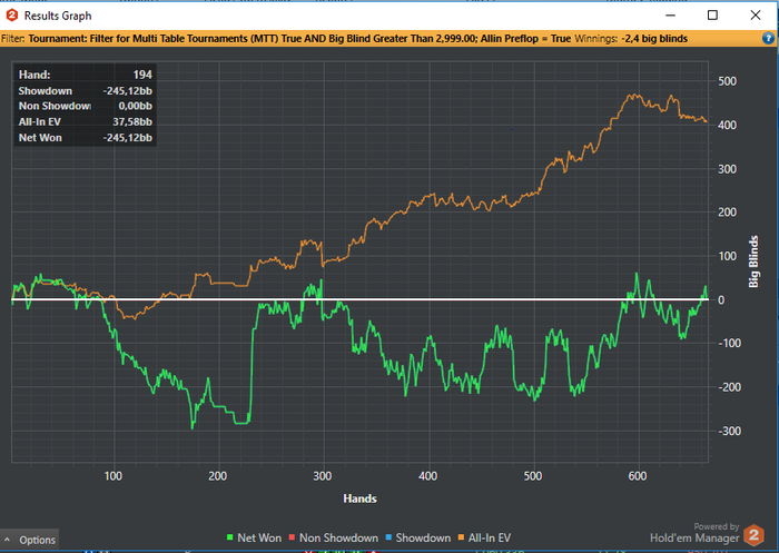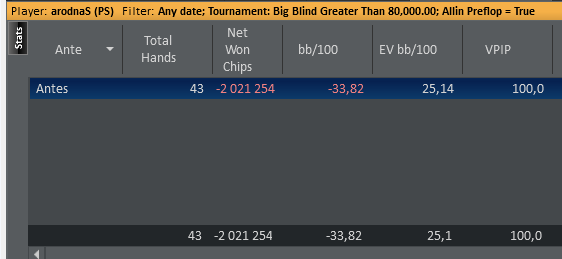 У меня, с момента возврата в мтт на ПС вот так. Недобор на 11к рук был бы хуйней, если б не каждые 20-30бб тут были монеткой на предфиналке-финалке и стоили овердохуя.