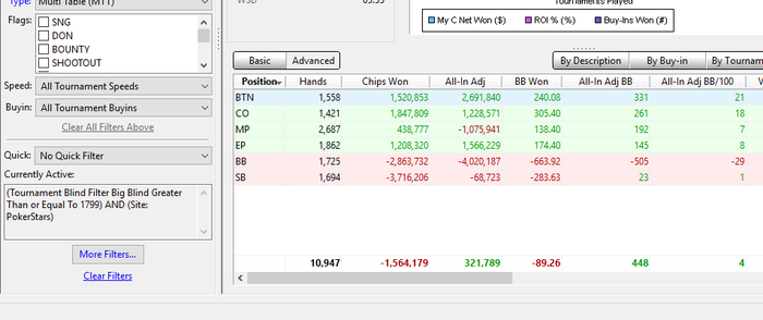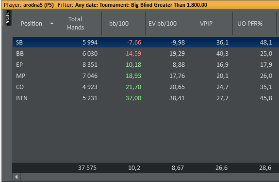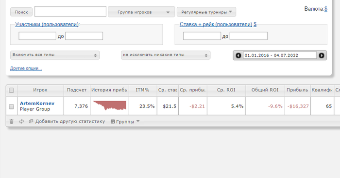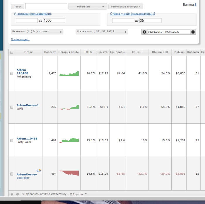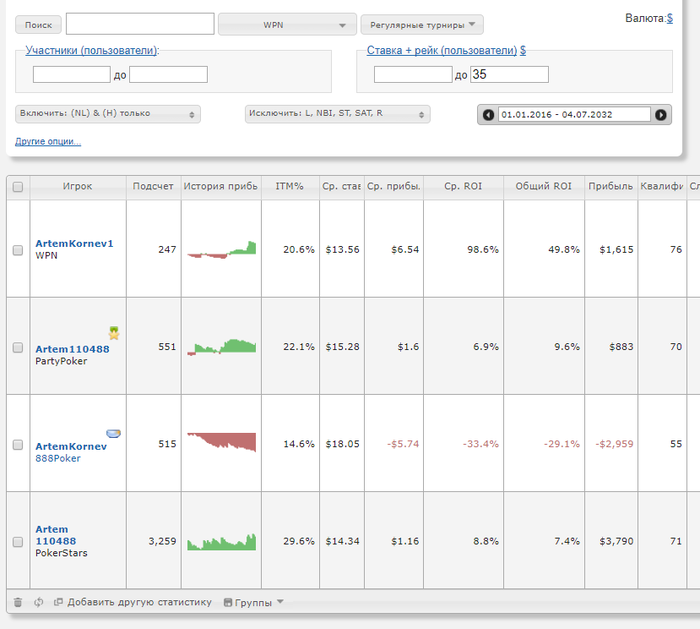 Первым делом убрал гипера, саты, ребаи(один хрен криво их считает, можно ими пренебречь), весь не нлх, и ясно дело, всё дороже 35$. Еще год назад я понимал, что не бью 35+ турниры. Не стоит этого стесняться, в этом нет ничего неприличного. Что есть, то есть. И вот уже всё не так плохо.