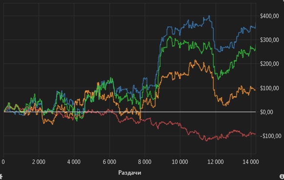 Худший месяц по количеству рук, всего лишь 14К рук, но зато лучший по профиту (естественно тупо всех попереезжал)