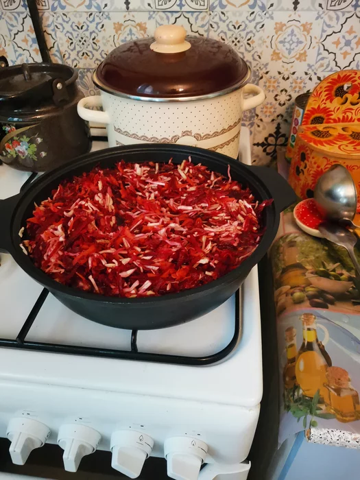Наварил вкусненного, кроваво красного борща-давно не делал, три порцайки скушал))