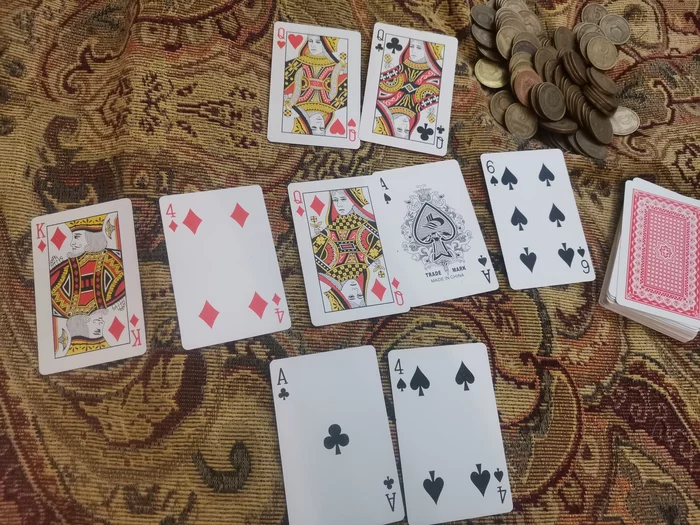 Ключевая раздача! Заманил меня в ловушку! Я преф агрессор, по выходу 4 я поставил треть, он плоскача-я олл-он колл! Я подумал на флешдро с 6 но без туза-все ему по умному обхяснил(как я вижу) а там дамы😁