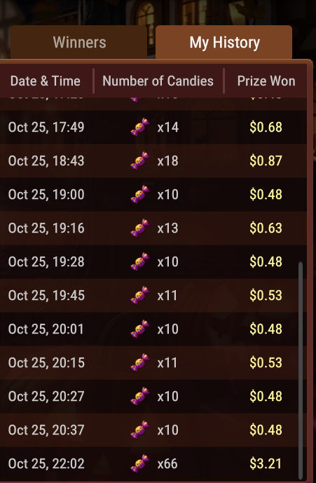 Призы, полученные в рамках этой акции, будут включены в испытания с банкроллом. Однако, если в обмене приза участвовали конфеты, приобретенные до начала испытания с банкроллом, весь приз будет аннулирован для испытания с банкроллом.