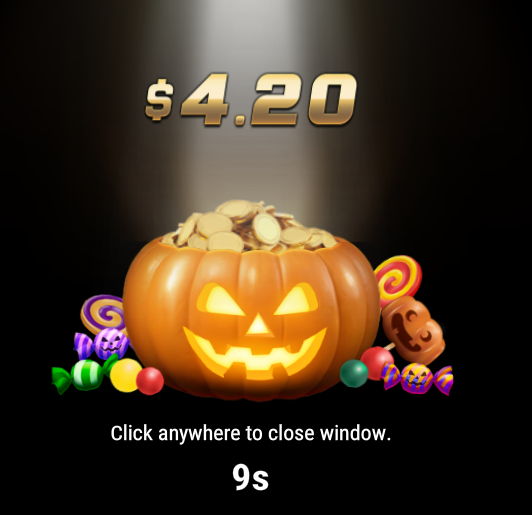Metalrag а каждый раз окно открывать не надо...сбоку поставил окно с тыквой, и жмешь на красную кнопку как 10 конфет появилось))я например так делаю, но у меня стабильность 20 центов,все три дня))))))))))))