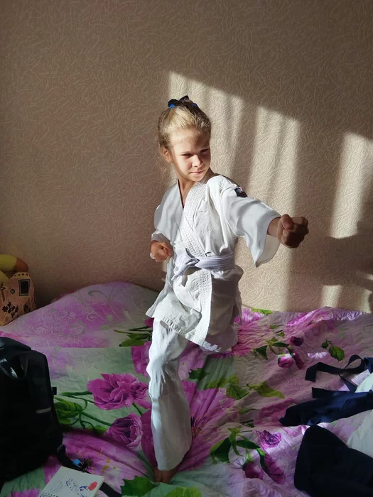 И ещё новость на сегодня-Катюшка записалась в каратэ-завтра первая тренька! Я уверен, если ей будет интересно-она добьётся успеха в этом спорте Раз в деревне неожиданно мне влепила кулаком по пузу-я аж кашлянул))