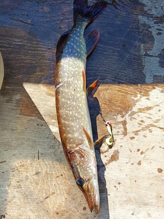 Вовка наконец то поймал щуку!