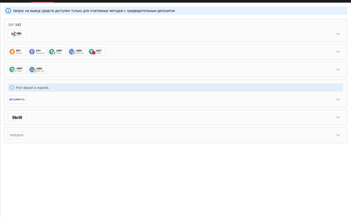Попытался вывести 50долл через 143 СБП Сбербанк, депозит ранее не вносил, возвратили деньги через час - Заявка отклонена платежной системой, попробуйте другой способ вывода.
