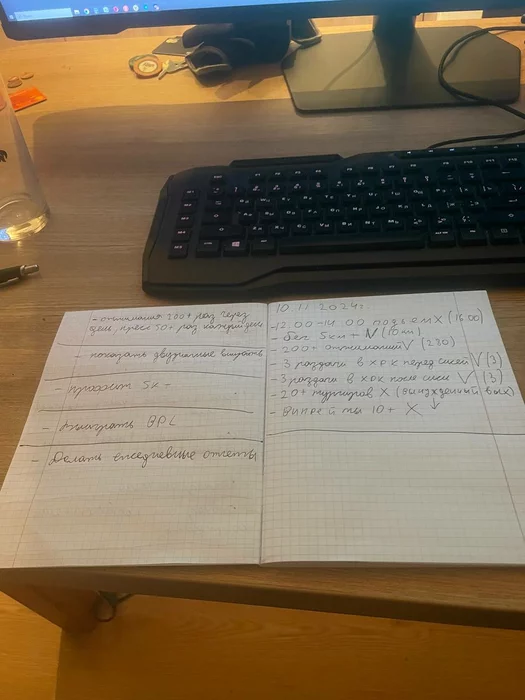 Так же завел тетрадь в которой написал большие цели и буду писать маленькие цели на каждый день и следить за их выполнением ( хоть ручку в руках подержал впервые за несколько лет).