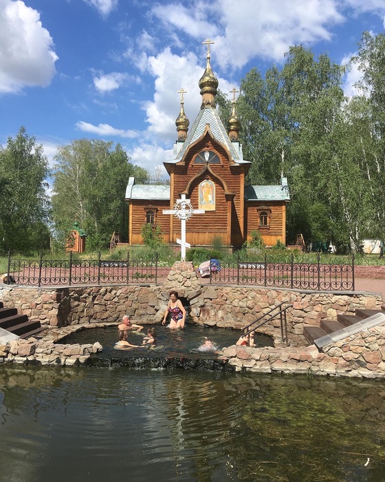 Место славится незамерзающим минеральным источником, который бьёт из трубы с температурой +37 и зимой и летом. Мы не отказались от идеи окунуться и причаститься к таинству омовения. У жены кривые руки и вместо фотографий она наделала видео со мной в этот священный момент, чем испортила весь обряд.