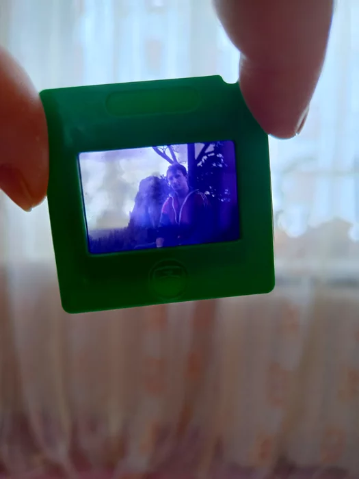 То есть это куски пленки в пластиковых рамках, цветное изображение можно было смотреть через диаскоп, или как там аппарат назывался.. Не знаю, можно ли как-то попробовать оцифровать их..