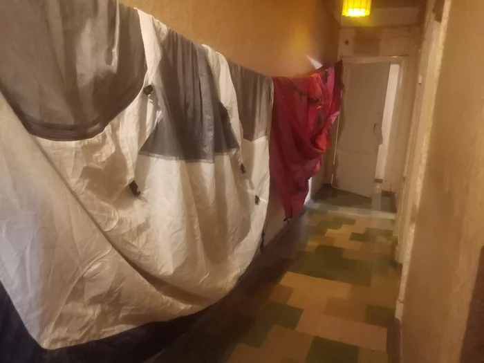 Назад ему ещё палатку общую втюхали нести-просушить и потом в школу отнести надо!