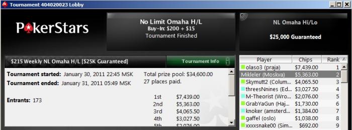 Все, закончил в ХОРСЕ 41м. В лимитхолдеме 10-10 в ВВ коротыша (но и я не намного больше был) и следом 65с в А10о.