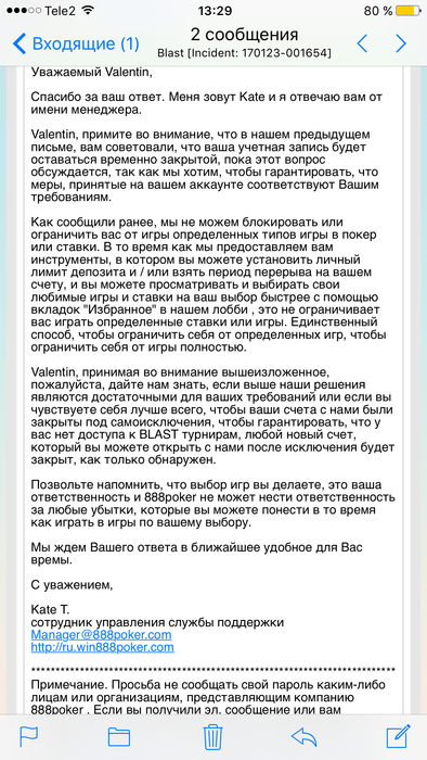 888, Пришло вот такое вот письмо. Мало того,что аккаунт не разблокировали до сих пор,так я половину не понял то ли из-за кривого перевода,то ли из-за непонятного изложения того,что мне хотели донести.