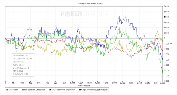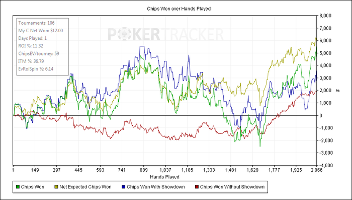 Ну а сессия сегодня вот такая. Пацанские иксы тащились на ура и чип ев показывал на них хороший (кроме х10). А вот на х2 у меня явно проблемы. Мне кажется не я играю их на отъебись, а оппы так играют. И мне почему то проще выигрывать в иксах, где оппы стараются что то показать и их логику легко проследить и заэксплойтить. А вот на х2 такие мувы вытворяют, что вообще забей. Не получается эксплойтить всякий трэш типо агро пуши всех рук или какие то бредовые колы по 3-ей паре. Да боже они даже 2/3 банка колят по гатшоту Ну а сам я сегодня вбил себе перед сессией 2 простых истины, о которых уже не раз говорил. Больше постфлопов, ТАГовый стиль. Добавил много 3-бетов в страту и блефов в мультипотах. Вообщем интересно.