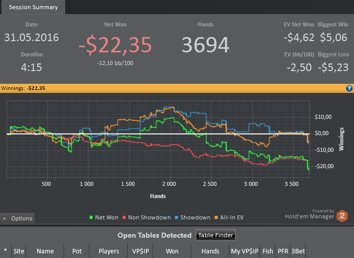 Driadorian @ 2.6.2016 ))) У меня вчера вернуло чутка. Сдали - на 3бет от рега сыграл кол ООП и чек-пуш на флопе с флешдро. На терне К. Переехал тузов )